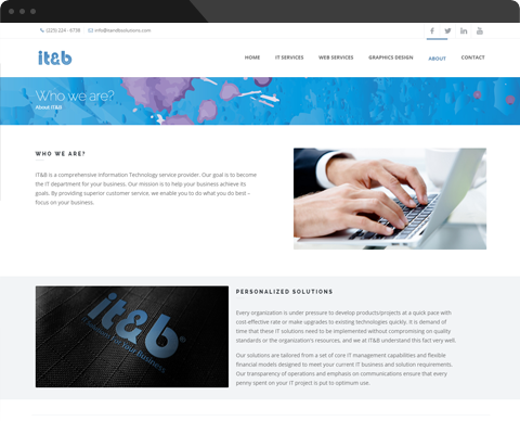 • IT&B’s experts in IT strategy will guide your firm through initiatives ranging from IT governance to business process improvement to designing the most optimum application and technical architecture to ensure that your enterprise's IT is leveraged and well positioned to support future profitability.